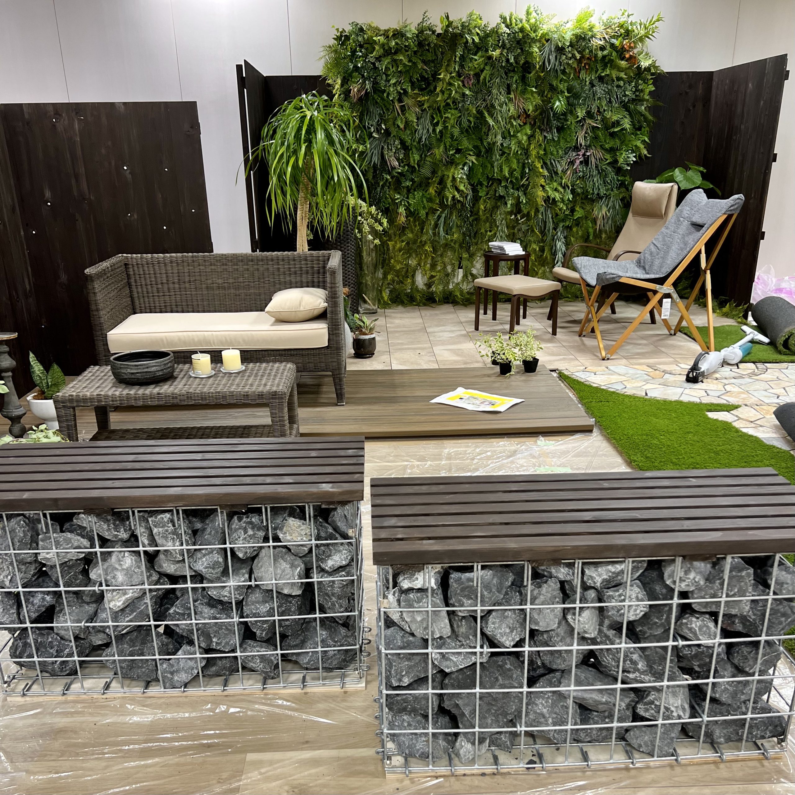 また、カゴに本物の石を積めた「ガビオン」に興味を示されるお客様が多かったです。